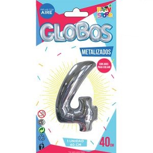 Inicio / GLOBOS METALIZADOS / Numeros de 14" / Número 4 Plata 14″ Party GMCP4