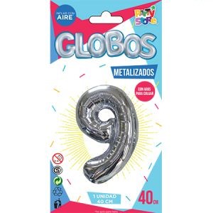 Inicio / GLOBOS METALIZADOS / Numeros de 14" / Número 9 Plata 14″ Party GMCP9