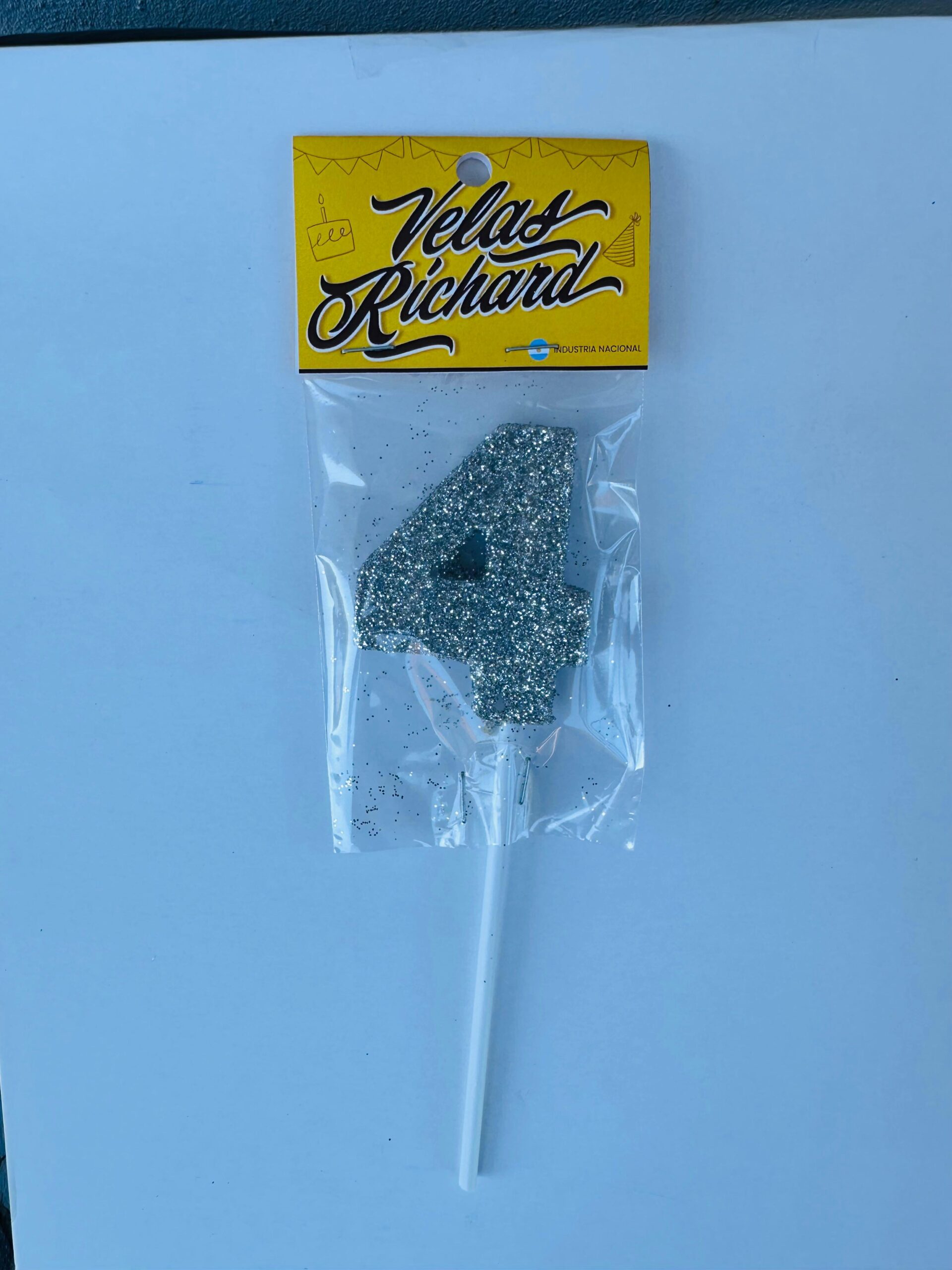 Vela Numero 4 Gibre Plata (en Blister) 5cm caja x 20un