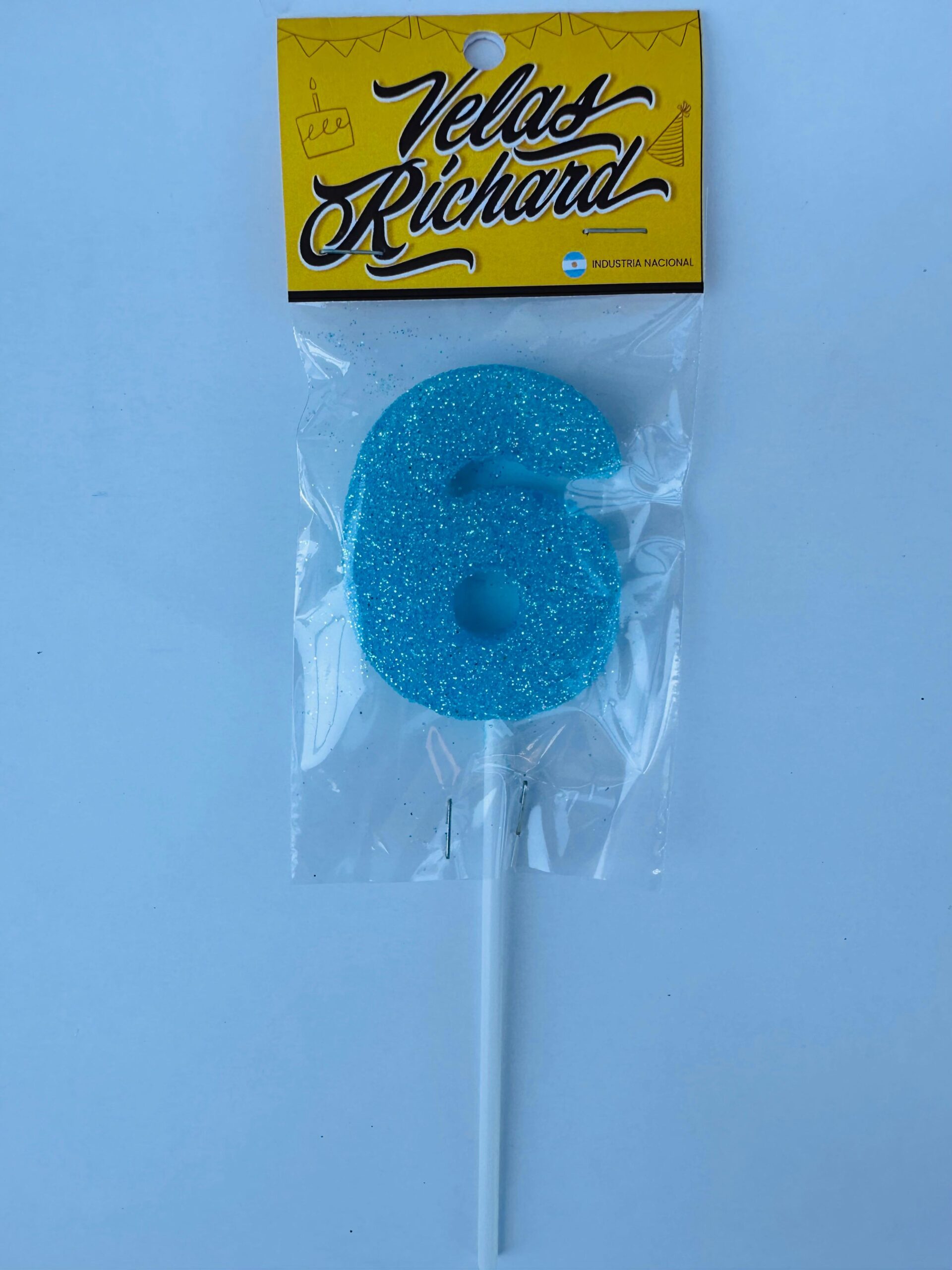 Vela Numero 6 Gibre Celeste (en Blister) 5cm caja x 20un