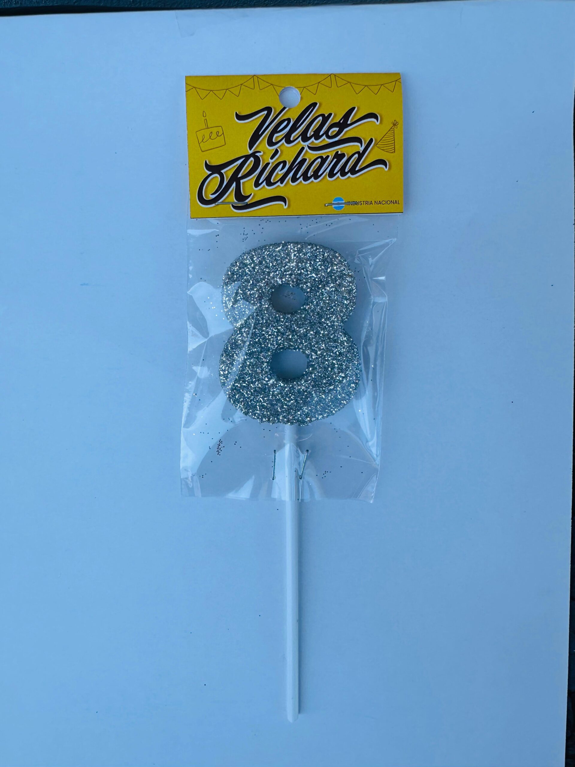 Vela Numero 8 Gibre Plata (en Blister) 5cm caja x 20un