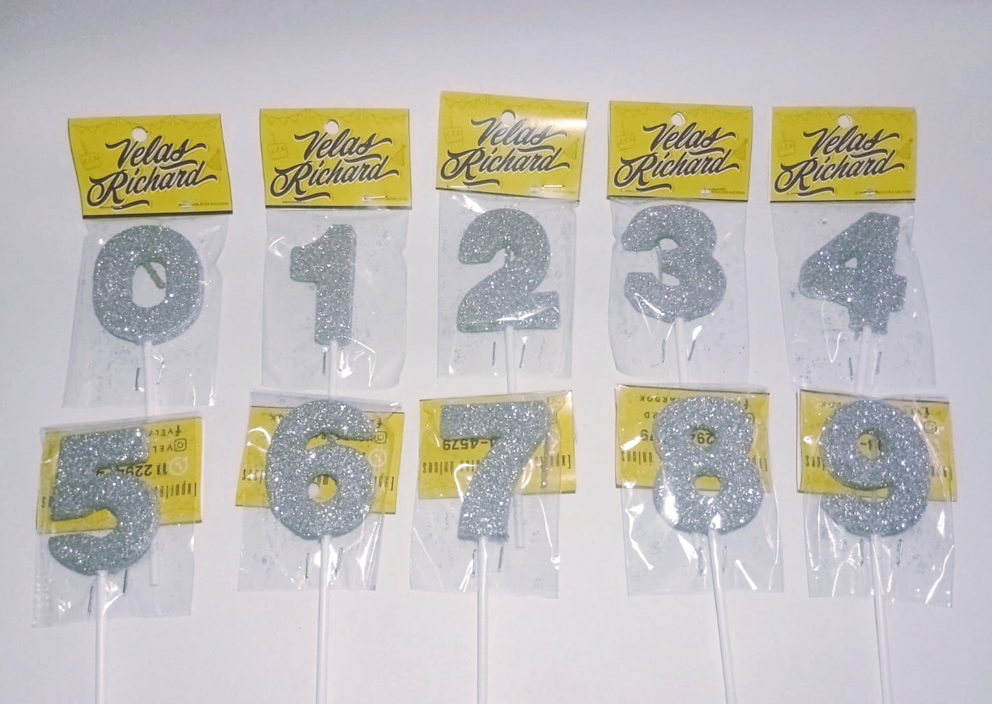Vela Numero Gibre Plata Caja Surtida de 0 al 9 (en Blister) 5cm caja x 20un