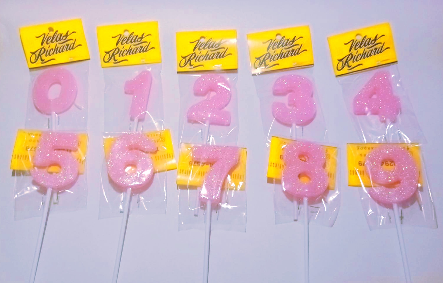 Vela Numero Gibre Rosa Caja Surtida de 0 al 9 (en Blister) 5cm caja x 20un