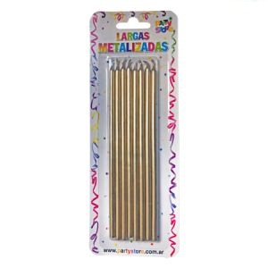 **Velas Largas Metalizadas Doradas x 8un VLMDO